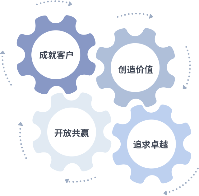 成就客户是一切决策的出发点,创造价值是衡量所有工作的标准,追求卓越是亚米游戏做事做人的态度,开放共赢是亚米游戏的格局也是最终的结果。价值观的齿轮环环相扣,推动着组织里的每个人不断向前。